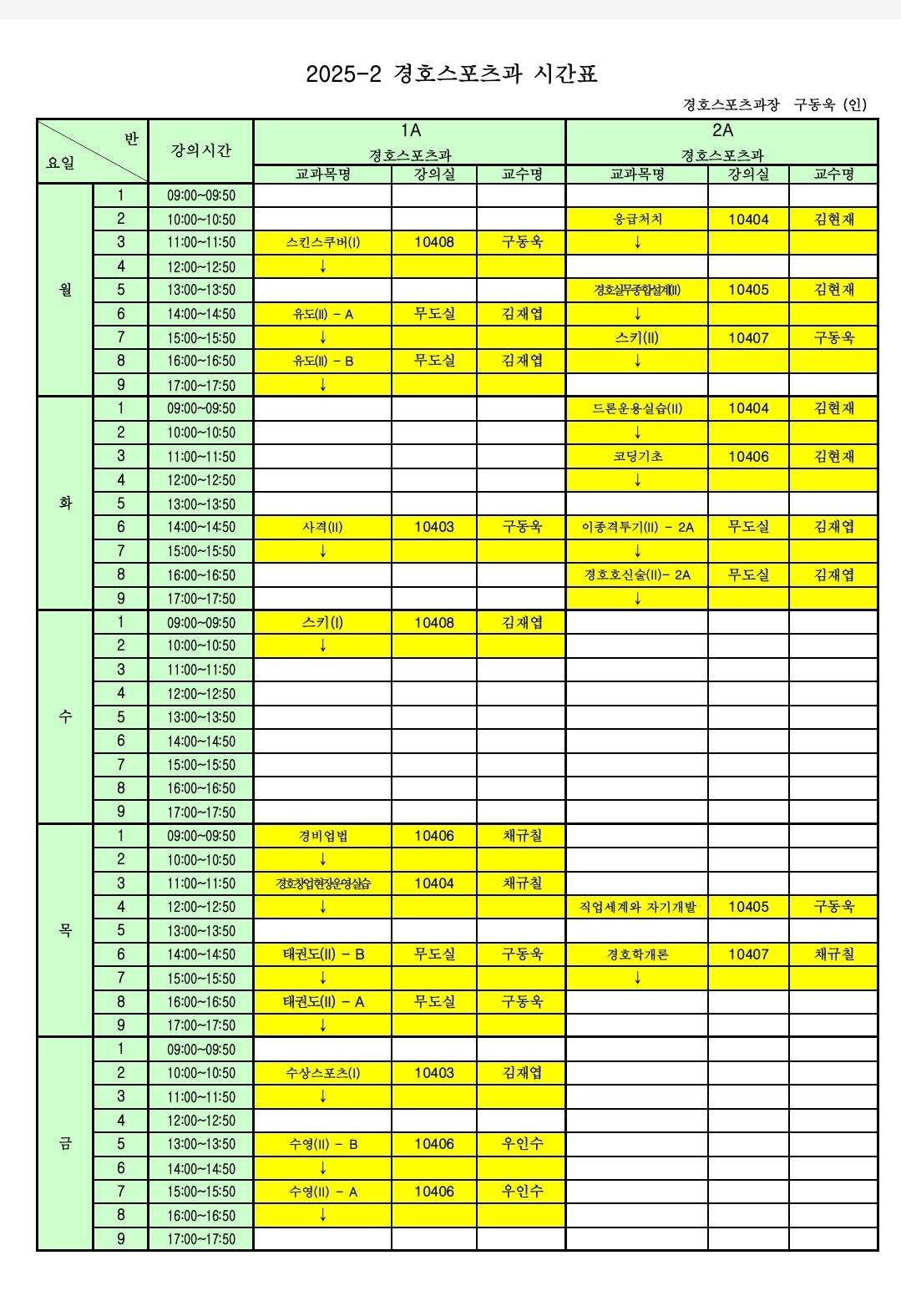 2025-2 경호스포츠과 시간표